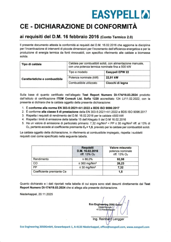 DICHIARAZIONE DI CONFORMITÁ E CERTIFICAZIONE AMBIENTALE EPW 22